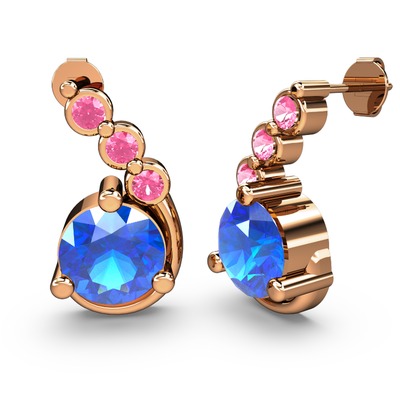 Akuamarin ve pembe kuvars 925 ayar rose altın kaplama gümüş küpe