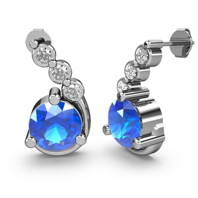Akuamarin ve pırlanta 925 ayar gümüş küpe (0.108 karat)