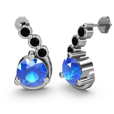Akuamarin ve siyah zirkon 8 ayar beyaz altın küpe