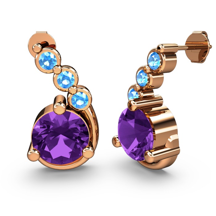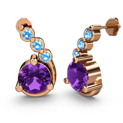 Ametist ve akuamarin 8 ayar rose altın küpe