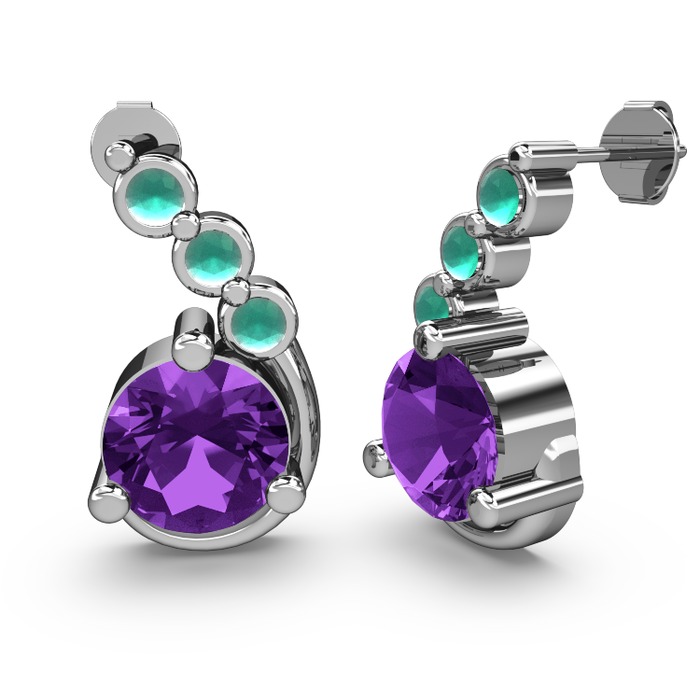 Ametist ve kök zümrüt 14 ayar beyaz altın küpe