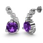 Ametist ve pırlanta 14 ayar beyaz altın küpe (0.108 karat)