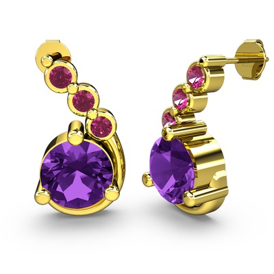 Ametist ve rodolit garnet 8 ayar altın küpe