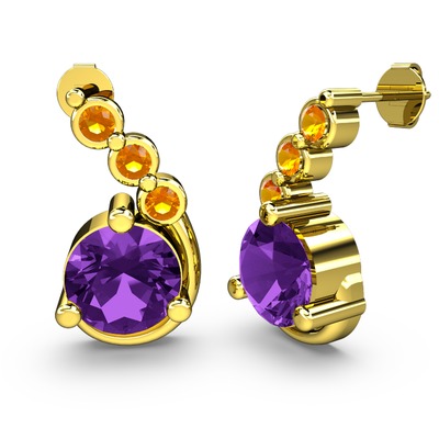Ametist ve sitrin 925 ayar altın kaplama gümüş küpe