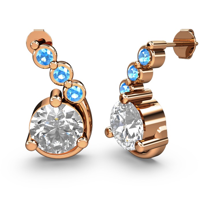 Beyaz zirkon ve akuamarin 14 ayar rose altın küpe