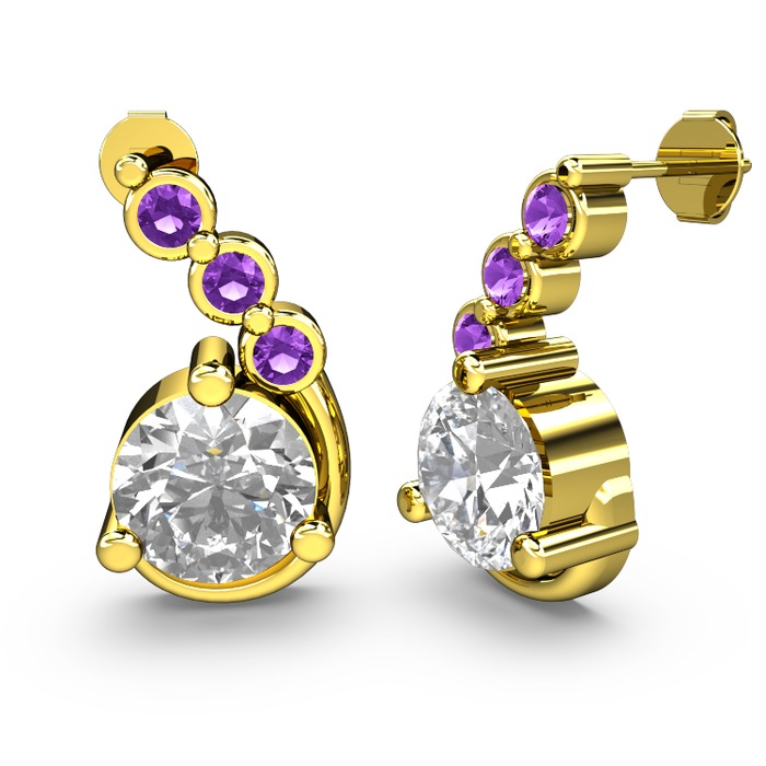 Beyaz zirkon ve ametist 8 ayar altın küpe