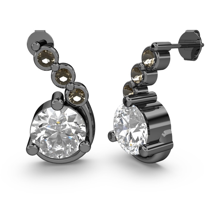 Beyaz zirkon ve dumanlı kuvars 925 ayar siyah rodyum kaplama gümüş küpe