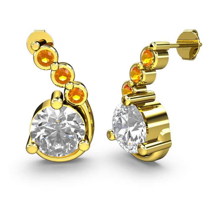 Beyaz zirkon ve sitrin 18 ayar altın küpe