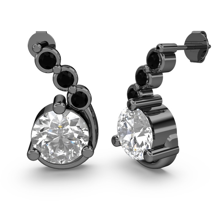 Beyaz zirkon ve siyah zirkon 925 ayar siyah rodyum kaplama gümüş küpe