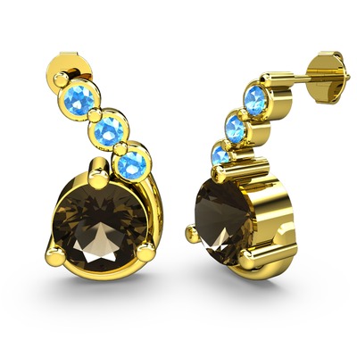 Dumanlı kuvars ve akuamarin 14 ayar altın küpe