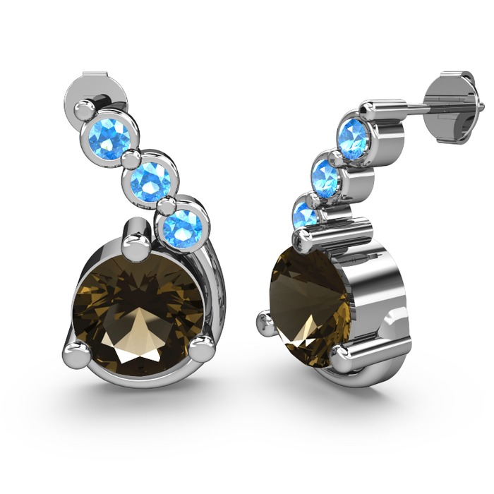 Dumanlı kuvars ve akuamarin 14 ayar beyaz altın küpe