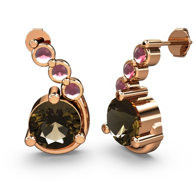 Dumanlı kuvars ve kök yakut 18 ayar rose altın küpe