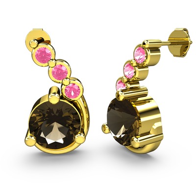 Dumanlı kuvars ve pembe kuvars 8 ayar altın küpe