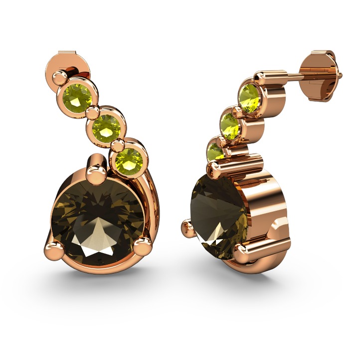 Dumanlı kuvars ve peridot 8 ayar rose altın küpe