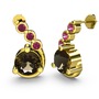 Dumanlı kuvars ve rodolit garnet 18 ayar altın küpe