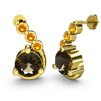 Dumanlı kuvars ve sitrin 14 ayar altın küpe