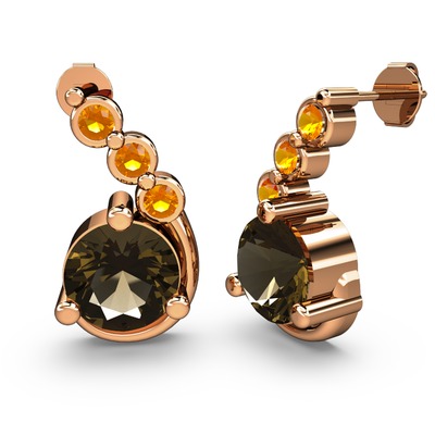 Dumanlı kuvars ve sitrin 18 ayar rose altın küpe
