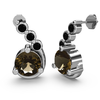 Dumanlı kuvars ve siyah zirkon 8 ayar beyaz altın küpe
