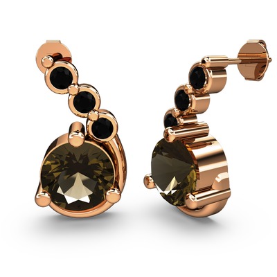 Dumanlı kuvars ve siyah zirkon 8 ayar rose altın küpe