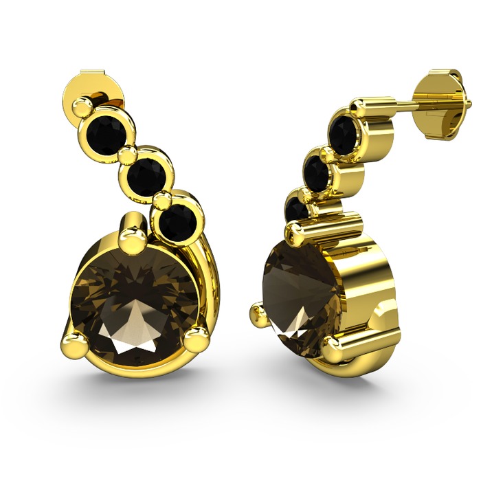 Dumanlı kuvars ve siyah zirkon 925 ayar altın kaplama gümüş küpe