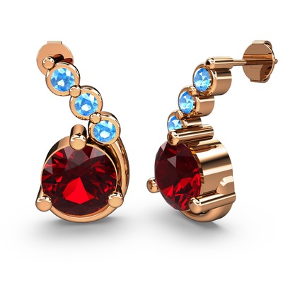 Garnet ve akuamarin 14 ayar rose altın küpe