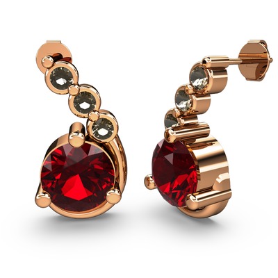 Garnet ve dumanlı kuvars 8 ayar rose altın küpe