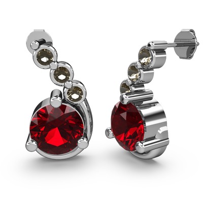 Garnet ve dumanlı kuvars 925 ayar gümüş küpe