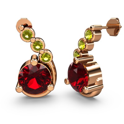 Garnet ve peridot 925 ayar rose altın kaplama gümüş küpe