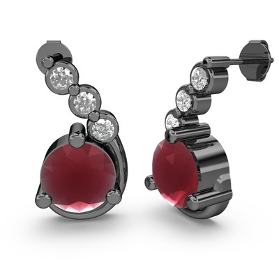 Kök yakut ve beyaz zirkon 925 ayar siyah rodyum kaplama gümüş küpe