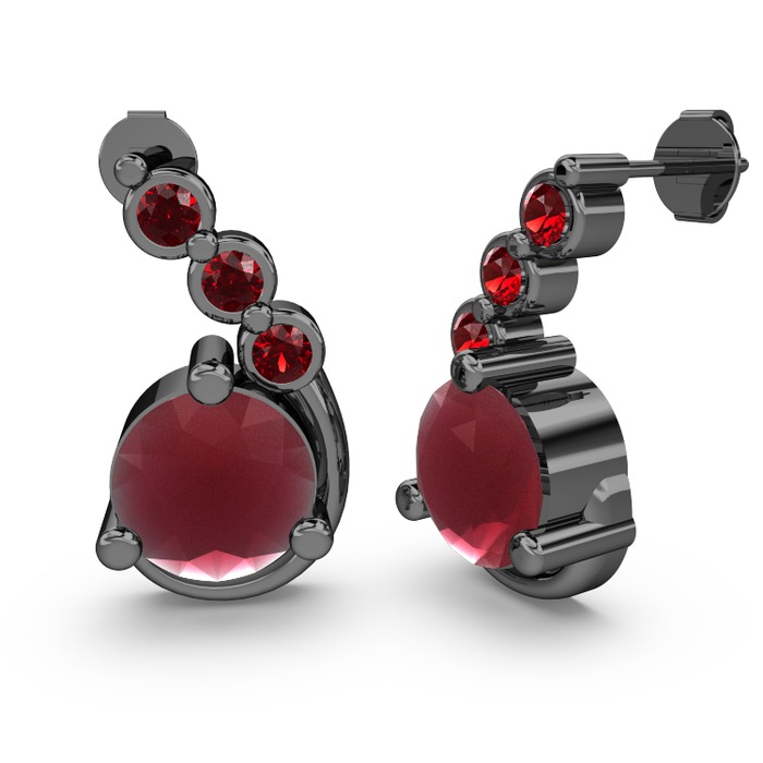 Kök yakut ve garnet 925 ayar siyah rodyum kaplama gümüş küpe