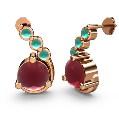 Kök yakut ve kök zümrüt 925 ayar rose altın kaplama gümüş küpe