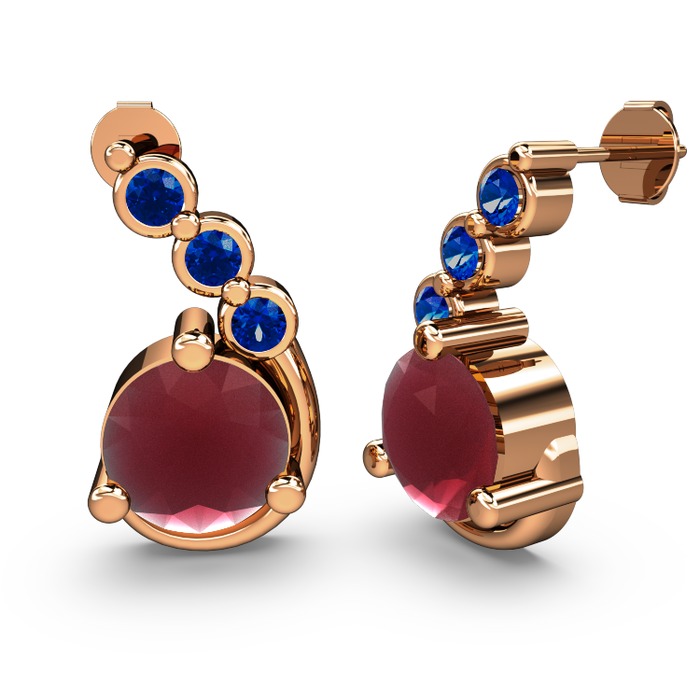Kök yakut ve lab safir 8 ayar rose altın küpe