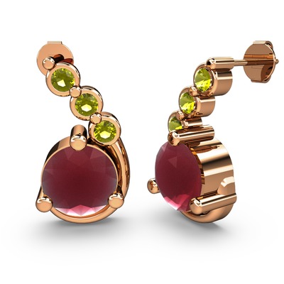Kök yakut ve peridot 14 ayar rose altın küpe
