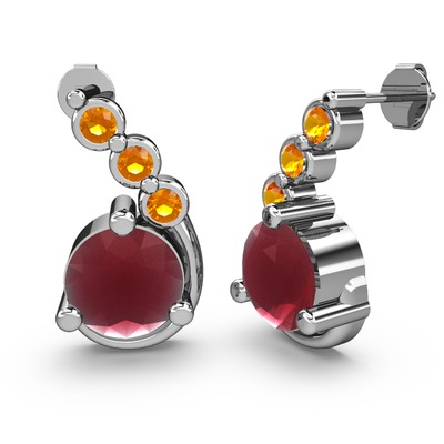 Kök yakut ve sitrin 18 ayar beyaz altın küpe