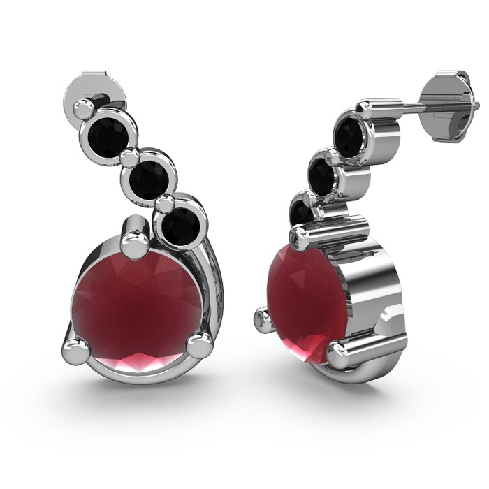 Kök yakut ve siyah zirkon 14 ayar beyaz altın küpe