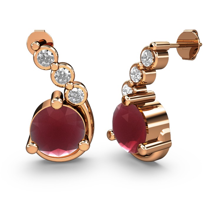Kök yakut ve swarovski 14 ayar rose altın küpe