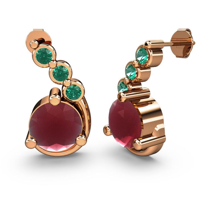 Kök yakut ve yeşil kuvars 8 ayar rose altın küpe