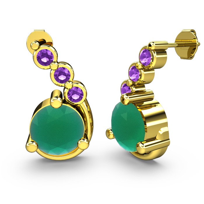 Kök zümrüt ve ametist 925 ayar altın kaplama gümüş küpe