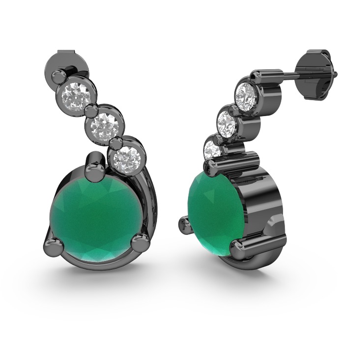 Kök zümrüt ve beyaz zirkon 925 ayar siyah rodyum kaplama gümüş küpe