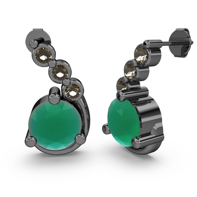 Kök zümrüt ve dumanlı kuvars 925 ayar siyah rodyum kaplama gümüş küpe