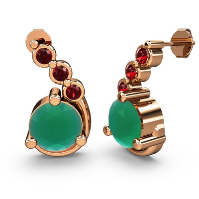 Kök zümrüt ve garnet 925 ayar rose altın kaplama gümüş küpe