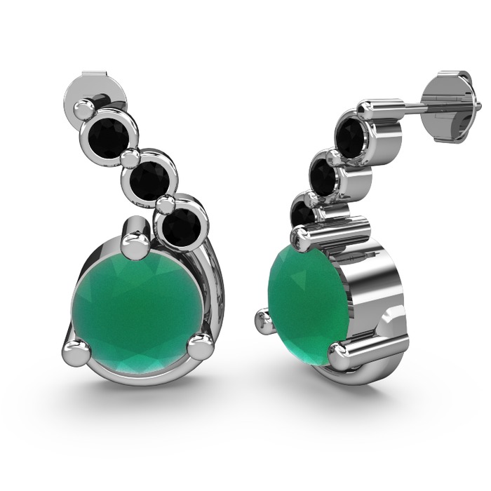 Kök zümrüt ve siyah zirkon 925 ayar gümüş küpe