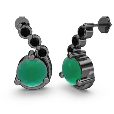 Kök zümrüt ve siyah zirkon 925 ayar siyah rodyum kaplama gümüş küpe