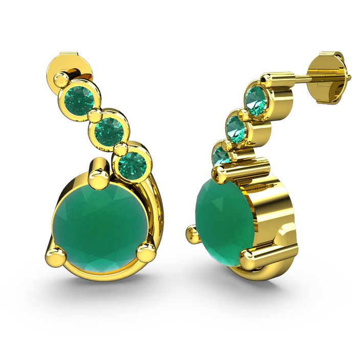 Kök zümrüt ve yeşil kuvars 14 ayar altın küpe