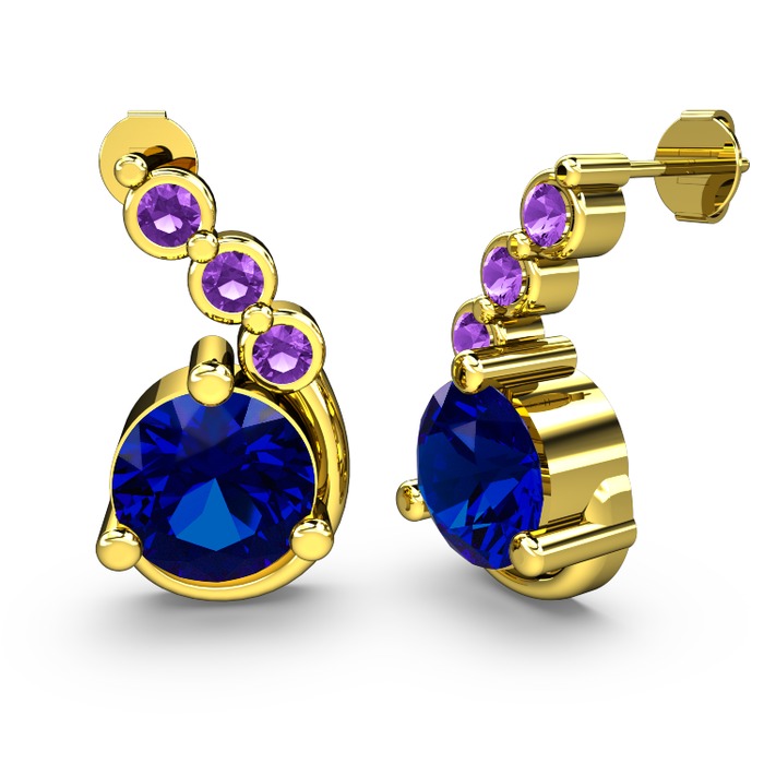 Lab safir ve ametist 8 ayar altın küpe