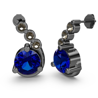 Lab safir ve dumanlı kuvars 925 ayar siyah rodyum kaplama gümüş küpe