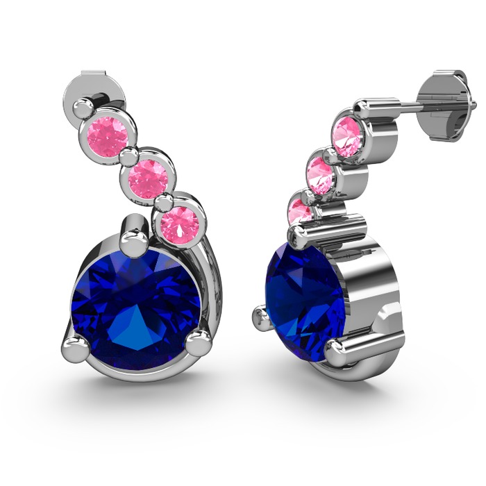 Lab safir ve pembe kuvars 925 ayar gümüş küpe