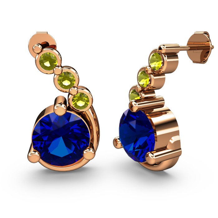 Lab safir ve peridot 925 ayar rose altın kaplama gümüş küpe