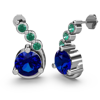 Lab safir ve yeşil kuvars 14 ayar beyaz altın küpe