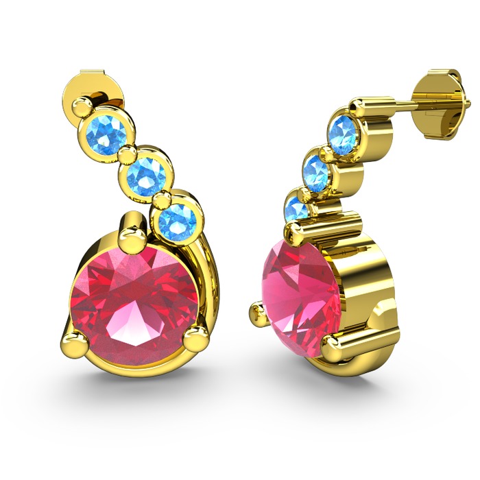 Pembe kuvars ve akuamarin 925 ayar altın kaplama gümüş küpe